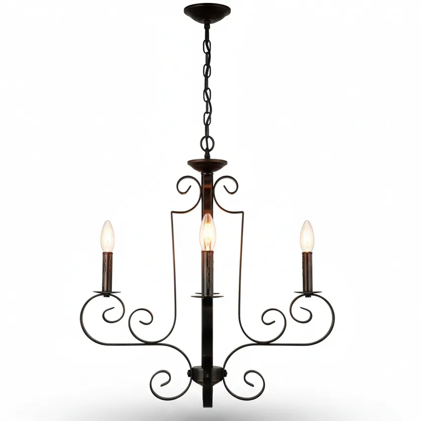 Elegante lámpara de techo colgante de 5 luces con diseño rústico-clásico de metal. Ideal para comedores, salones y recibidores, aporta un toque sofisticado y luz cálida.