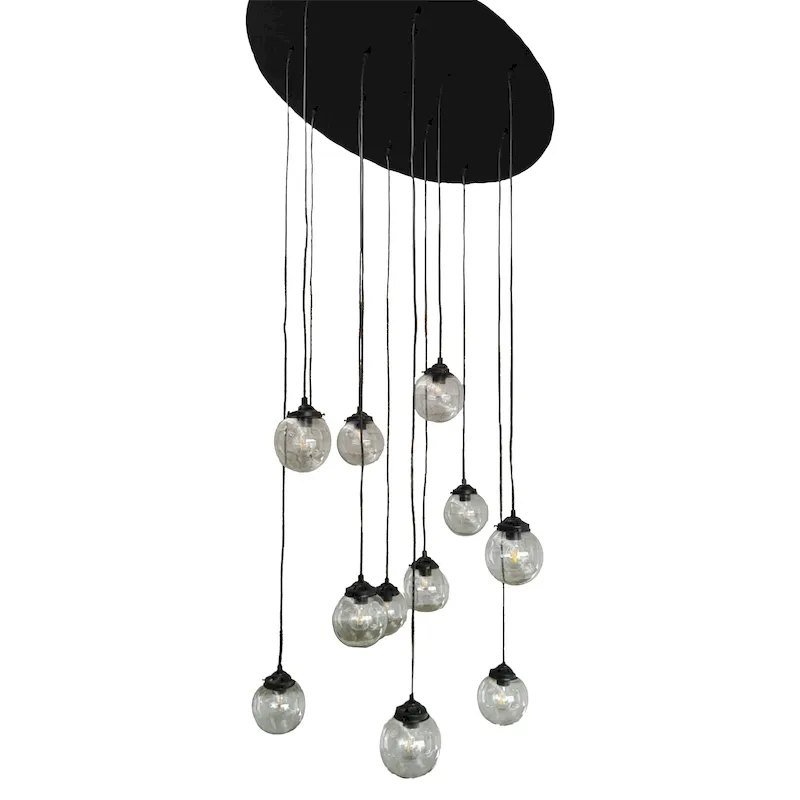 Y se hizo la luz. Desde las antorchas de fuego que alzaban nuestros antepasados para alumbrarse, pasando por la lámpara de aceite (la primera lámpara auténtica), hasta nuestras lámparas de hoy, presentamos este lindo diseño en desnivel, una de las privilegiadas que ocupa un lugar el Olimpo de las lámparas clásicas contemporáneas. consta de 12 globos de arte transparentes , que se adapta perfectamente al estilo contemporáneo, que está diseñado en un estilo minimalista, pero también se ve muy armonioso con muchos otros estilos de muebles modernos y se demuestra en todas partes como una luz general atmosférica.